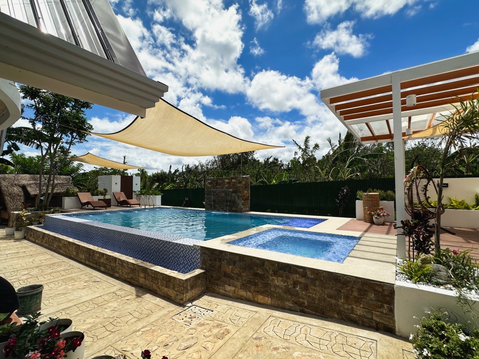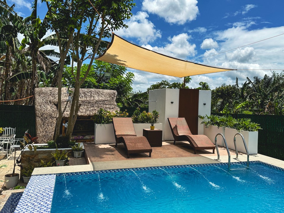 Escape to The Farmers Bench Resort in Amadeo, Philippines, where you can enjoy luxury and peaceful surroundings in beautiful scenery. Stay comfortably in our retreat! You can choose from cozy cabins, traditional nipa huts, or charming small Kubos, all surrounded by nature. Jump into blissful relaxation in our private pool, perfect for both adults and kids alike, featuring a soothing jacuzzi to enhance your experience.